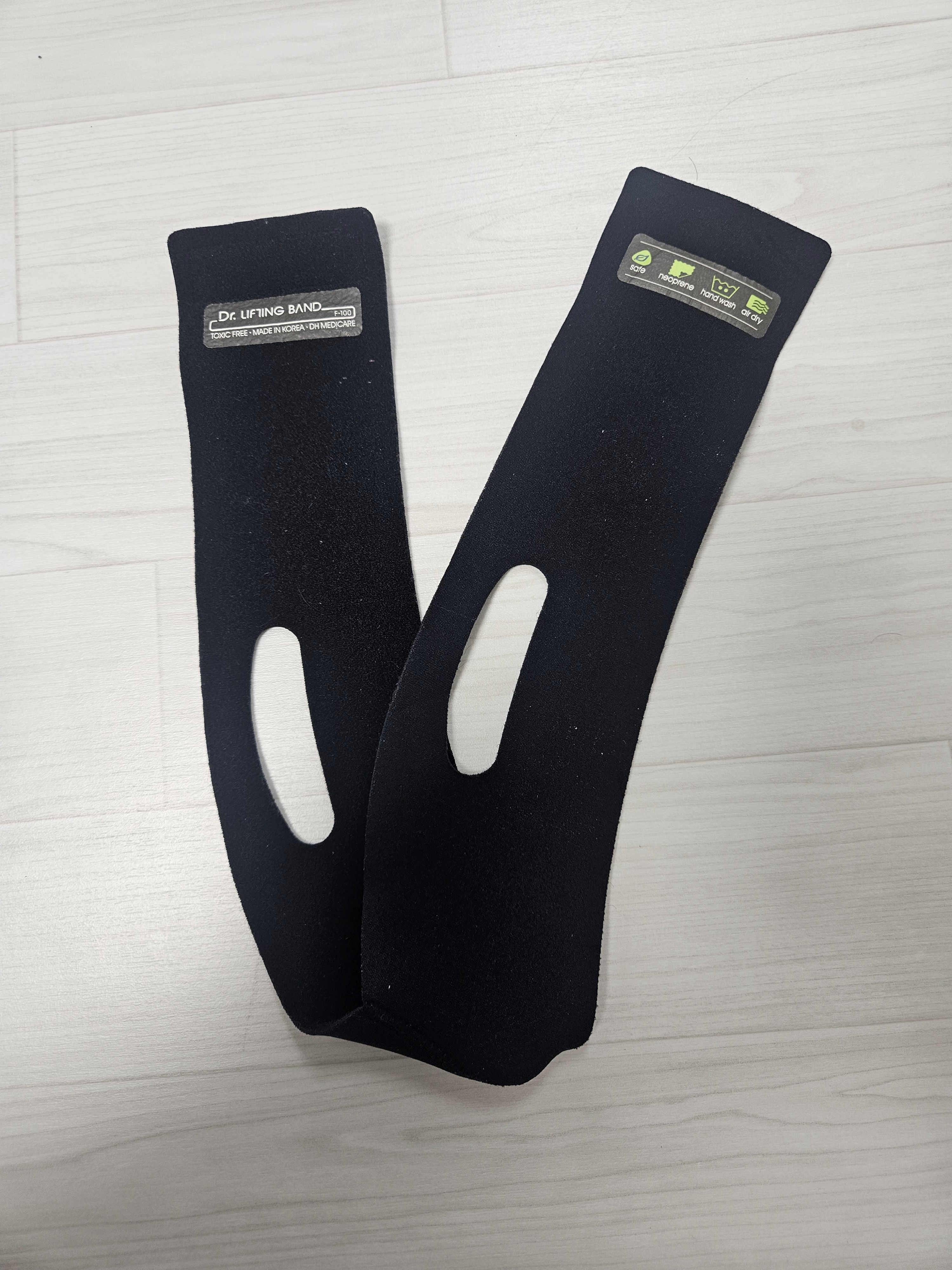 머리와 턱에 착용하는 얼굴용 밴드입니다. 턱 벌어짐을 방지해주는 기구입니다. 이것도 답답해서 풀게됩니다 ㅠ